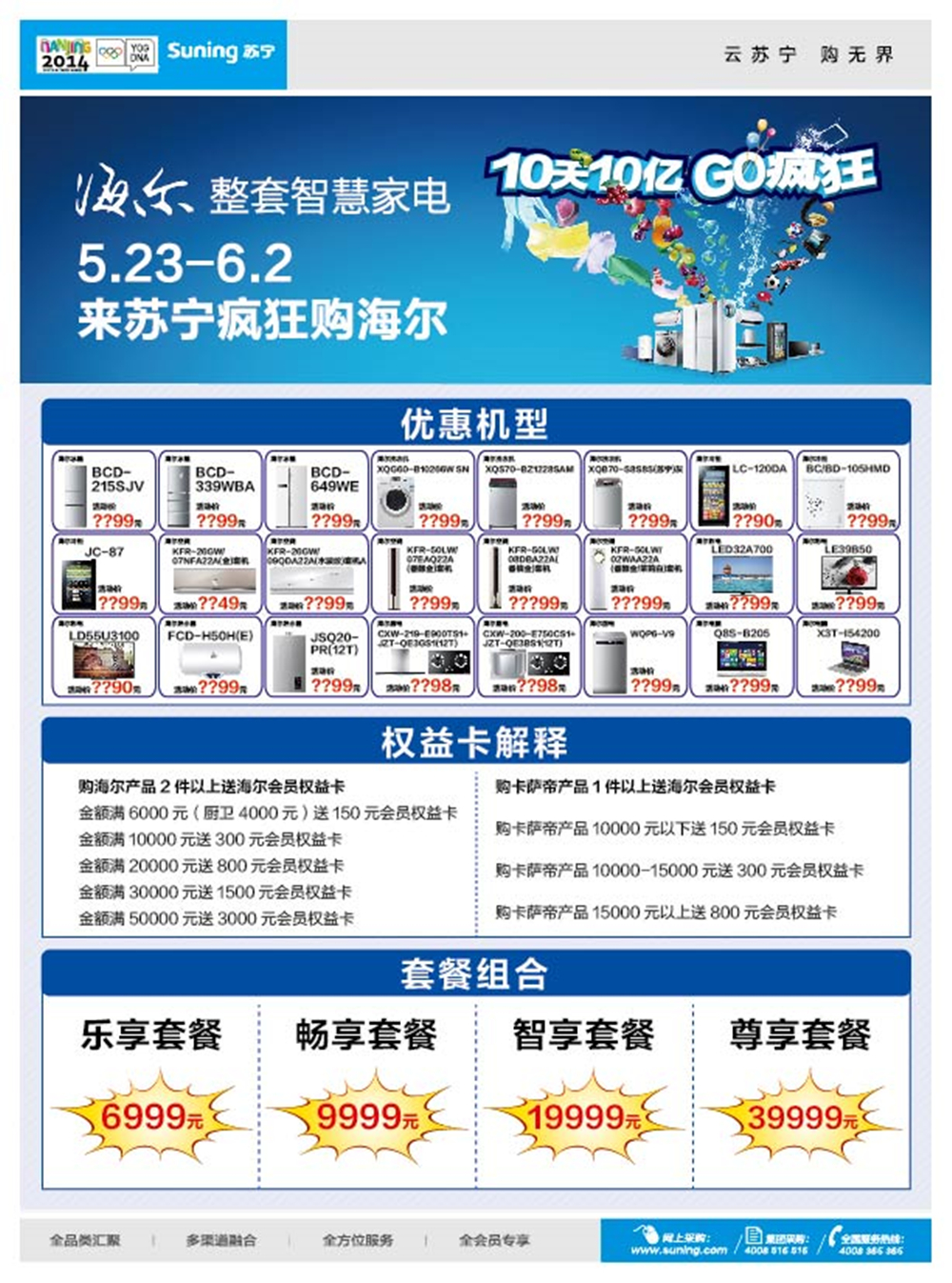 购海尔产品2件以上送海尔会员权益卡: 金额满6000元(厨卫4000元)送150元会员权益卡、海尔2+级会员 金额满10000元送300元会员权益卡、海尔2+级会员 金额满20000元送800元会员权益卡、海尔2+级会员 金额满30000元送1500元会员权益卡、海尔2+级会员